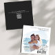 This modern save the date card features your favourite photo with elegant typography and calligraphy script, creating a timeless and simple design. Perfect for contemporary couples, this square wedding stationery piece includes a QR code linking directly to your wedding website, making it easy for guests to find all your event details. A chic and sophisticated way to announce your upcoming wedding with modern elegance.