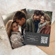 This design features a save the date photo card perfect for weddings, with a simple photo template, with an elegant, modern minimalist, classy, simple style, with a scannable QR code, and a modern, calligraphy script style.