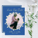 Save The Date Photo Wedding Blue Gold Hearts announcement card designed with gold hearts on a blue background and featuring your favourite couple's photo inside the heart wreath. To personalise simply replace the picture with your favourite image using our template. Click FIT or FILL to cover the space and be sure to centre in the circle. The heart wreath will remain on top. Next insert your text into the template, replacing the sample names and date. The front gold coloured text includes: Save The Date, the Bride and Groom's First Names and Wedding Date. The reverse is a matching shade of blue with gold heart accent.