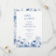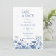 Сard save the date, in blue colours with delicate flowers, floral blue frame, blue vintage collection