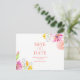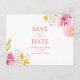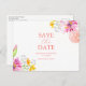 Announce your engagement with this floral wedding save the date postcard. It features a mix of classic and script typography in orange over a a crisp white background. A boarder of unique watercolor floral art frames you details in shades of pinks, peach, orange and lilac. Use the template fields to personalise with your information.To see the matching wedding stationery suite and more ideas visit Do Tell A Belle in the Zazzle marketplace.