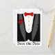 Save the Date postcards, with a cool tuxedo design. Customise with your own text on the back with your information & get the matching postage for a designer look!