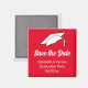 A white grad cap is above 'Save the Date" in a white script. Three lines of white display text are at the bottom. You can edit the text to show the graduate's name, a custom message, and the event date.
