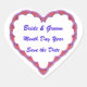 Save the date sticker for your envelopes. Red white and blue heart border has the look of spread wings. Add your names and wedding date to personalise it.
