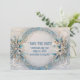 An Art Deco-inspired Save the Date wreath featuring stunning shades of turquoise. Customise the text with your details—a lovely way to invite family and friends to save the date.