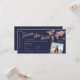 Modern and creative travel themed photo save the date script world map plane boarding pass with faux rose gold foil and editable navy blue background perfect for destination weddings. Add your favourite engagement or travel trip photo to the front.