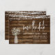 Rustic Farmhouse String Lights and Baby's Breath in a Jar Save the Date Wedding Invitations on Wood background - includes beautiful and elegant script typography with modern Country Farm House Sparkle for the special Wedding day celebration.