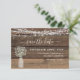 Rustic Farmhouse String Lights and Baby's Breath in a Jar Save the Date Wedding Invitations on Wood background - includes beautiful and elegant script typography with modern Country Farm House Sparkle for the special Wedding day celebration.