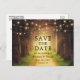 Save The Date Rustic Forest Path String Lights Announcement Postcard