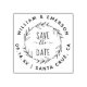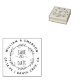 This stamp is an excellent choice for any couple looking for a personal touch to their wedding-related mail. This design features your names, wedding date and wedding location in a circle around the outside of the stamp with a frame of rustic, hand-drawn leaves inside surrounding some rustic typography that reads "save the date" in a blend of rustic script and all-caps lettering. Click the "personalise" button at the top to add your own details and then be sure to check the best size for your needs!