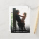 This modern script photo save the date card features a full bleed photo overlayed with a script save the date above your names, date and venue in white text.
