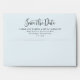 Designed to coordinate with the Lea Delaveris Design simple script save the date collection, this envelope is the perfect way to send your engagement announcements. Coordinate your suite with this simple and elegant script on a light sky blue back. The front has a matching "Deliver to" while the back has "save the date" in the same script along with your return address.