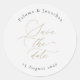 Announce your big day in style with this elegant Save the Date sticker! Featuring graceful calligraphy and your custom names and wedding date, it's the perfect finishing touch for envelopes, favors, or gifts. A timeless design that sets the tone for your unforgettable celebration.