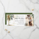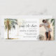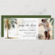 Our beach destination save the date wedding ticket is the perfect way to make your big day even more special. Featuring romantic watercolor tropical palm trees, a photo of the bride / groom, a compass, and a elegant save the date template that is easy to personalise.