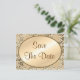 Elegant "Save The Date" vintage look postcards on an oval frame album cover with pretty damask lace pattern in a champagne golden beige tone with brown text. Easy to personalise on the back with all information needed. Or, just delete the sample text to hand write later as needed. Unique and classy party invitation or announcement postcards for your guests! Great fiftieth golden anniversary or 50th birthday invitations!