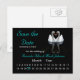 Save the Date postcard annoucements, or reminders, for the upcoming bride and groom newlyweds. The blue heart of love on the calendar can be moved to the date of the happy couple's wedding day in any month, just insert the month and year of the wedding date. Insert your own photo of the loving couple where the current swan picture is. If the swans are desired, also available is matching postage stamps, greeting cards, magnets, as well as stickers, etc.