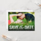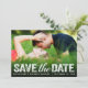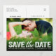 Postcard announcement of your wedding date. Use your full horizontal image with "Save our Date" over your photo. A black gradient appears along the bottom of the card to make type stand out. If you don't need the gradient, just eliminate it. Customise your names and date on front and back. There is another card with a white gradient with dark type available.