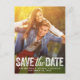 Postcard announcement of your wedding date. Use your full vertical image with "Save the Date" over your photo. A black gradient appears along the bottom of the card to make the type stand out. If you don't need the gradient, just eliminate it (or click on eye to turn it off). Customise your names and date on front and back. There is another card with a white gradient with dark type available.