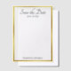 Save the Date is in an elegant, black script near the top. This white and gold wedding invitation vellum overlay can be personalised with the wedding date along with the names of the bride and groom. The faux gold border is not made of foil.