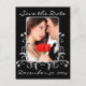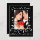 Black and White Wedding Save the Date With Your Photo Swirly Leaf Frame in Silver or for 25th Wedding Anniversary