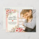 Modern Wedding Announcement Postponement Photo Postcard Templates - Elegant Lettering Script and Vintage Watercolor Flowers on Pink and Faux Gold Foil Confetti Polka Dots Background.