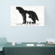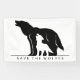 This is a black and white design of a howling wolf with her wolf pup. Many species of wolf (including the Grey Wolf) are still endangered. Text reads "Save the Wolves." This design can be personalised by adding your own text or images.