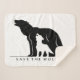 This is a black and white design of a howling wolf with her wolf pup. Many species of wolf (including the Grey Wolf) are still endangered. Text reads "Save the Wolves." This design can be personalised by adding your own text or images.