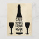Save Water Drink Wine Black Bottle Two Glasses Postcard