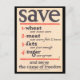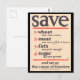 "Save Wheat, Meat, Fats, Sugar" Wartime WWI Poster Postcard
