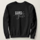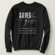 A Saved by Grace Christian modern black sweatshirt with Ephesians 2:8 Scripture. This is a sweatshirt that can be personalised on the backside with a name or other words > just delete that option if not using it.