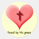 Saved by His grace. Cross in heart sticker.