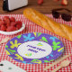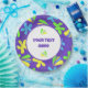 Colourful floral blobs on a purple background with customise/personalise text