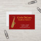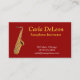 This business card is perfect for anyone involved with the saxaphone. It features a beautiful graphic of a saxaphone on the left hand side. The background is a deep red colour. The right hand is reserved for your business information.