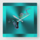 Saxophone Blowing Notes Modern Metallic Teal Square Wall Clock