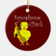 Saxophone chick in curly text with a cute yellow chick holding a sax is a funny music gift design for woodwind musicians at back to school, marching band, birthdays, graduation and holidays.