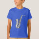 Design with illustration of saxophone,white and grey design; great gift for saxophone players, music instructors and jazz enthusiasts