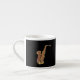 Design with illustration of saxophone on black background; elegant simple jazz musical instrument design