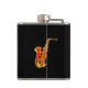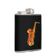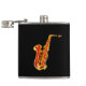 Design with illustration of saxophone on black background; elegant simple jazz musical instrument design