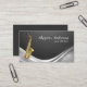 Business Card with saxophone vector image on a classy silver colored wave pattern background.