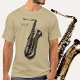 This photographic artistic rendering of a jazzy saxophone let's your love of The Blues, Jazz or brass instruments shine on this saxy musical T-shirt. Ideal for any musician, but especially a Sax player. Personalize this unisex tee shirt with your music lover's Name.