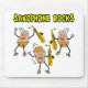 Saxophone rocks text with three dancing, saxophone playing rocks is a funny woodwind music design for marching band, birthdays, holidays and graduation.