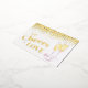 Say cheers to the love sparkling wine champagne glasses gold foil postcard bridal shower tasting invitation. Pretty hand-painted watercolor champagne glasses filled with golden yellow Champagne say cheers to the love postcard style invitations. Personalise with your own bridal shower bubbly details put on a stamp and write on your receiver's address. Original watercolor art and design by Sarah Trett www.sarahtrett.com for www.mylittleeden.com on Zazzle.