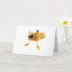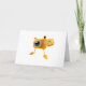 This design is a funny take on say cheese. It is a camera with arms and legs that is holding a piece of cheese. This say cheese design looks great on this Greeting Cards