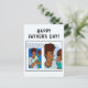 A card with a funny cartoon about a dad trying to teach his kid to day daddy. The background, image and text can be customised. Original artwork by DBcartoons.
