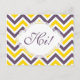 Send a message to tell them Hi with one of our custom postcards. Adorned with a fun and classic purple and yellow zig zag design with hand scripted letters the word Hi! on the front. Customise the back with your address. View our full selection of greeting cards in our Zazzle store!