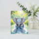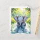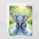An adorable way to say hi, I miss you and keep in touch with a friend or family member. The front of this cute postcard has a beautiful illustration of a baby elephant drinking out of a lake while looking at his own reflection.