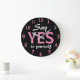 Are you looking for a cute motivational wall clock for someone you love? How about this cool round shaped wall clock that says 'Say YES to yourself' printed in pink and white letters on a black colour background? No matter what time it is, it will always be time to say YES to yourself!