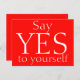 This is a powerful motivational quote red colour postcard that says: 'Say YES to yourself' printed in big white letters. Say YES to yourself! You deserve it!
