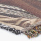 A quality printed throw has its advantages. This is a much finer weave throw than its loopier cousins, and though lighter, it is worth the investment for custom room accessorizing. The back is much prettier than the typical brown, and the fringe on the long sides very vivid, the selvage nicely done. Before photographing, I washed the throw in cold water, delicate, with a thicker woven throw the same size. On tumble dry low, this throw was dry in half the time as the other. This is a very practical quality if you use throws for furniture covers or to wrap up in frequently. The sleekness of the fabric makes it a great layer for accenting or protecting without the feeling of sitting on too much stuff. Perfect for napping or when you feel a light chill coming on. The color printing is beautiful and on this fabric, matched the design and color of my Photoshop image. This is an advantage for blending room fabrics and colors. The fringe on the short sides prints the colors from the design image and therefore varies from the side fringe. I streaked a white fractal line through the plaid pattern to give the illusion of weaving. This printed as crisp as an illusory thread, and put some white in the short side fringe, showing another advantage of print vs loomed- for artistic purposes, line lines, detail, and color integrity can be planned and preserved. My loomed throws have color limitations and more of a needlepoint texture. Print throws reproduce an exact image. The throw felt a little stiff straight out of the package, but this went away in the first delicate wash. Of course I searched the wash water for ink or bleeding and there was none.