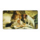 Suspense (aka Saying Our Prayers) (1894) by Charles Burton Barber is a vintage Victorian Era fine art family portrait painting. A young child and her pets (a jack russell terrier dog and a cute tabby cat) saying grace in bed before eating breakfast.